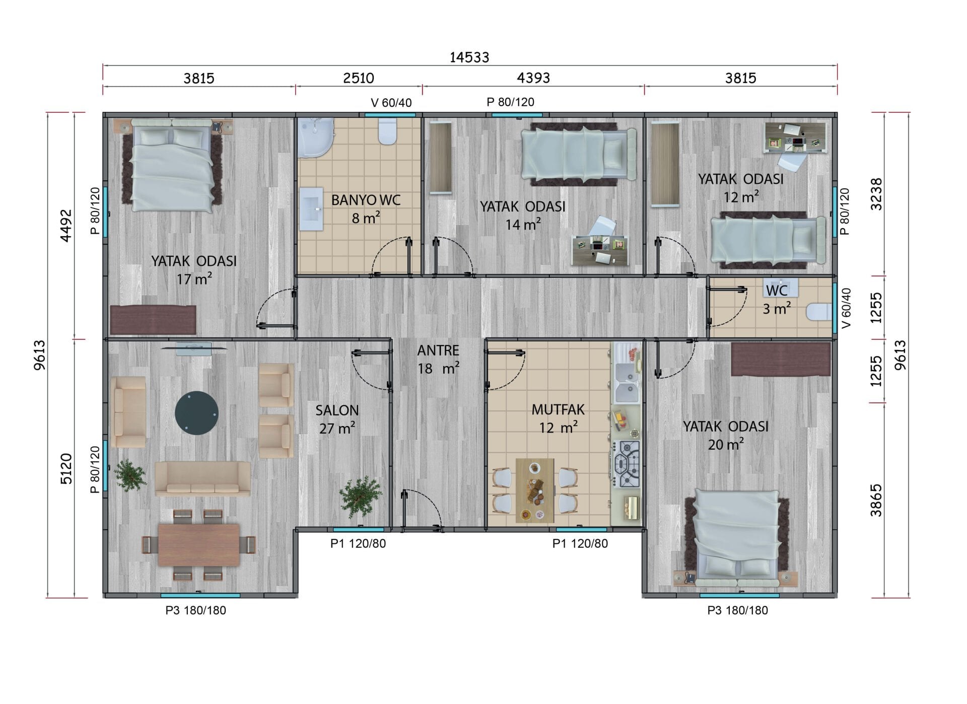 - İç Kapı : Amerikan Panel Kapı,
