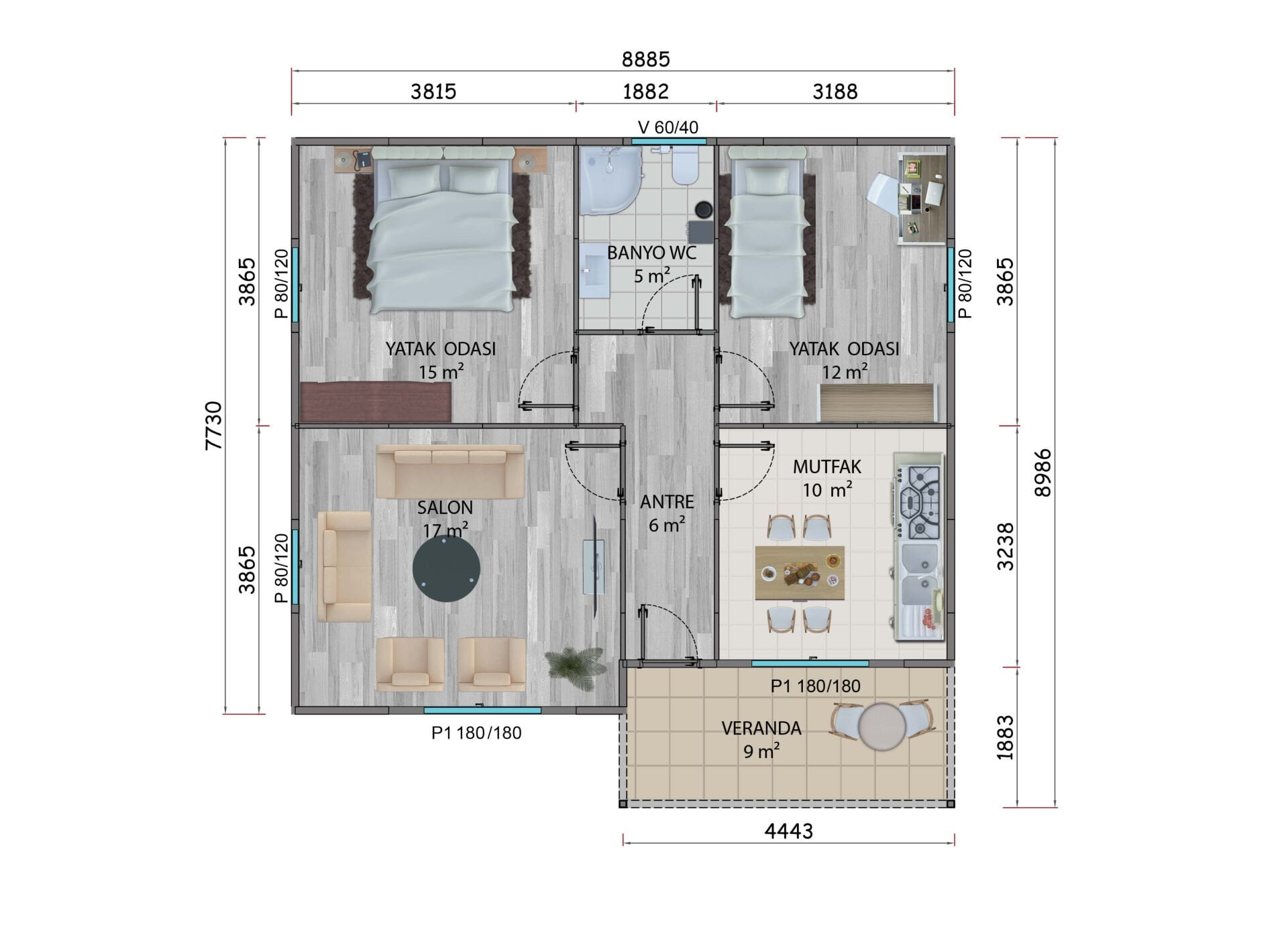 - İç Kapı : Amerikan Panel Kapı,