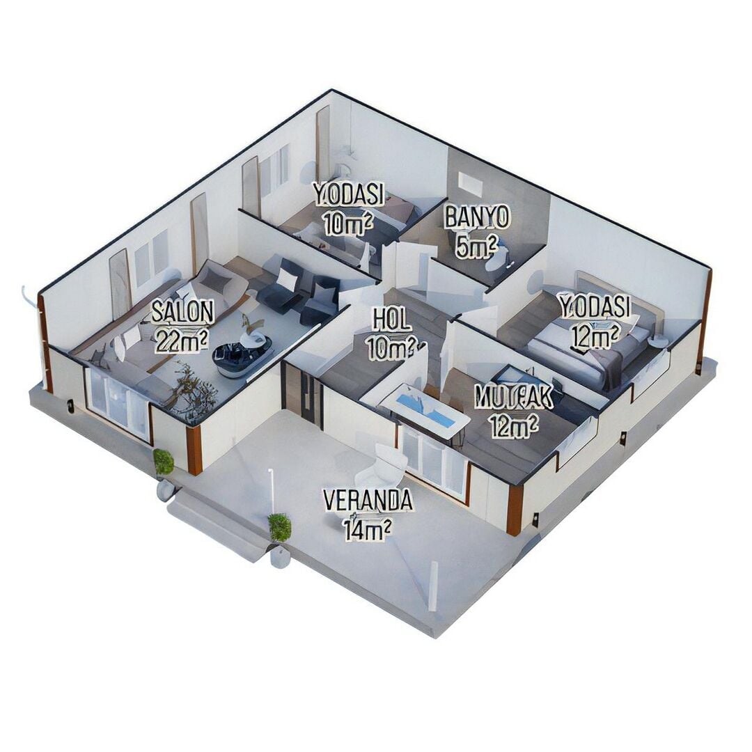 Prefabrik Ev 85 m2 Tek Kat 2+1 Ev Planı